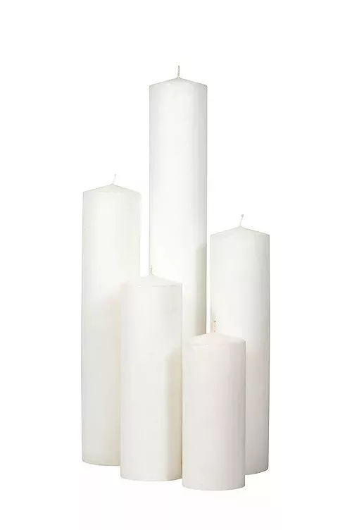 Paraffinból készült hosszúkás henger formájú gyertya.