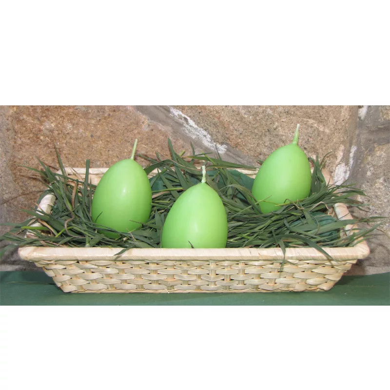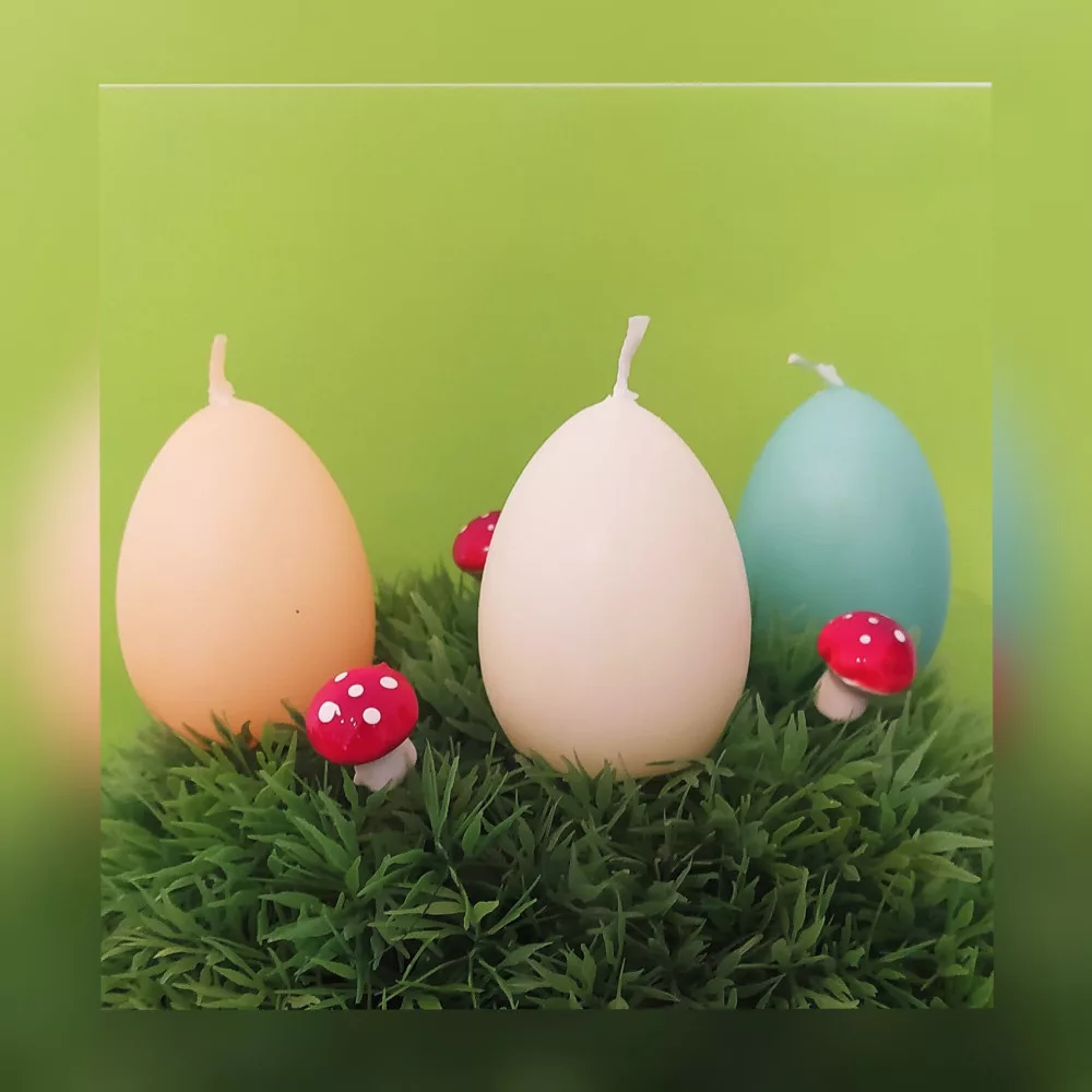 A tojás alakú gyertyák színei változatosak lehetnek, beleértve a hagyományos tavaszi árnyalatokat, például pasztellszíneket, mint a rózsaszín, kék, zöld vagy sárga.
