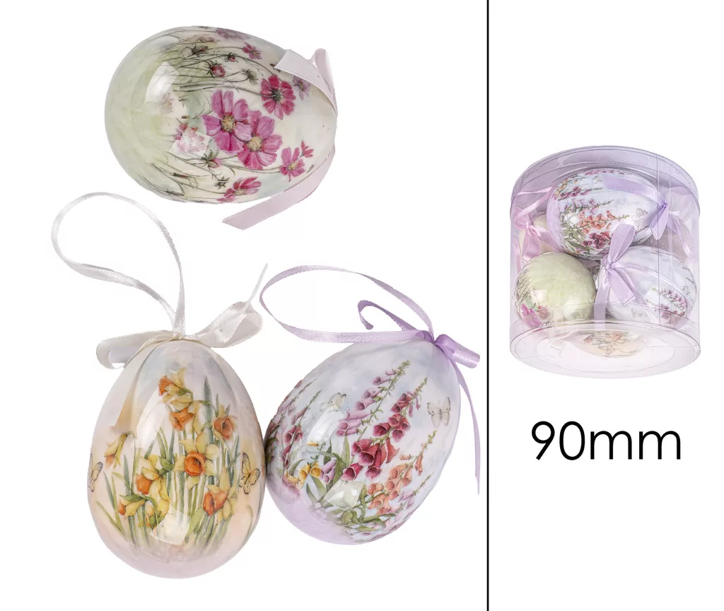 Műanyag dekor tojás nagy 6 db/csomag virágos