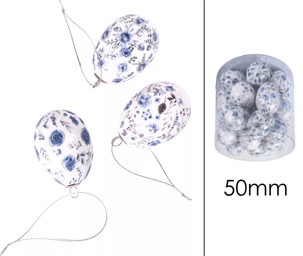 Műanyag dekor tojás 24 db/csomag kék virágos