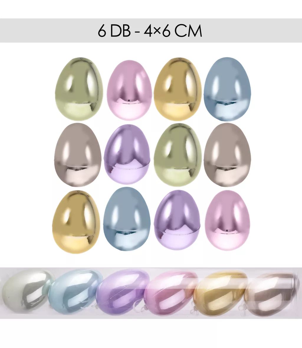 Műanyag dekor tojás 6 db/csomag metál