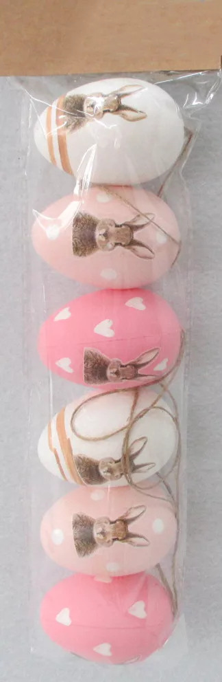 Műanyag dekor tojás 6 db/csomag fehér/rózsaszín nyúl