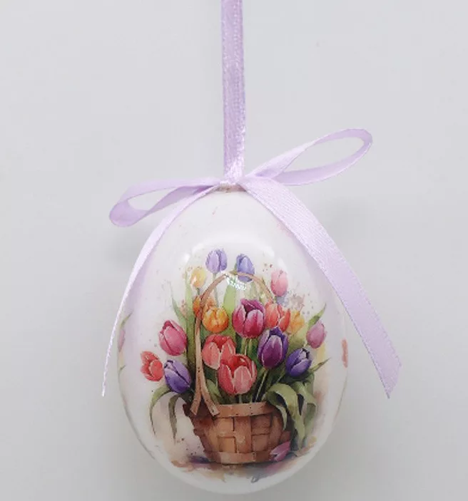 Műanyag dekor tojás 12 db/csomag tulipános